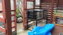 先日、御縁がありまして大型水槽を譲っていただきました。150×70×50センチのアロワナ飼育に使われていた水槽です。軽トラでお引き取りにいき、大人3名程度で温室(コンクリート土間)に運び込みました。温室には90センチのオーバーフロー水槽も稼...