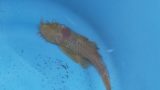 水から持ち上げると、↓のような感じ。から揚げサイズの小さめですがーー結構、糸を引く力が強かったです。