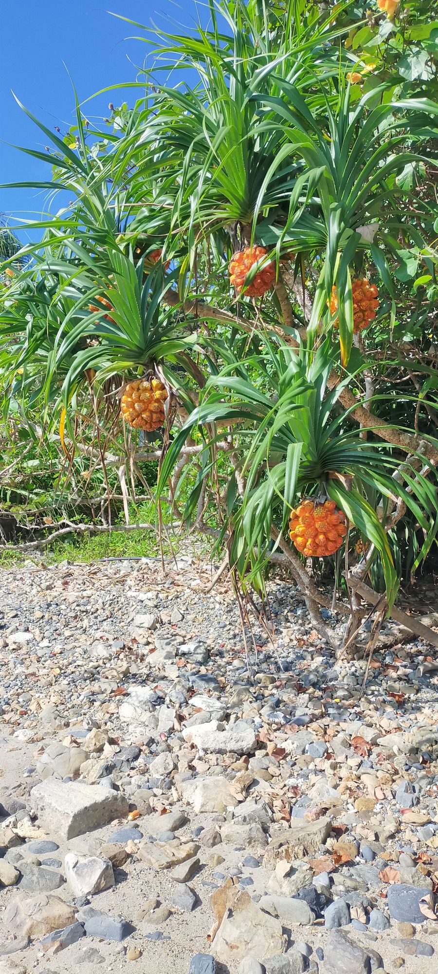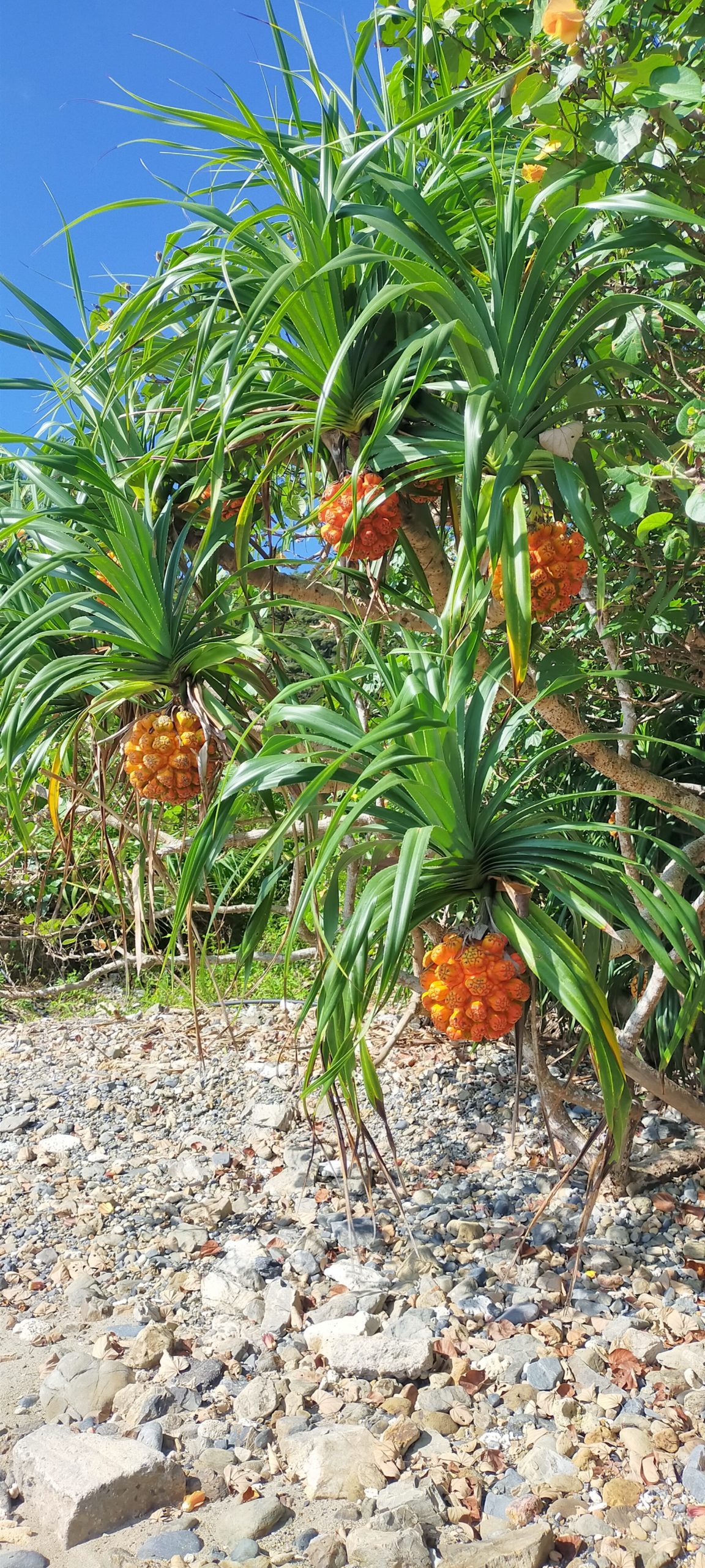 まず↑は、アダンの木と熟れたアダンの実。アダンは海辺に生えて、鳥やオカヤドカリの餌になる実を付けてくれます。