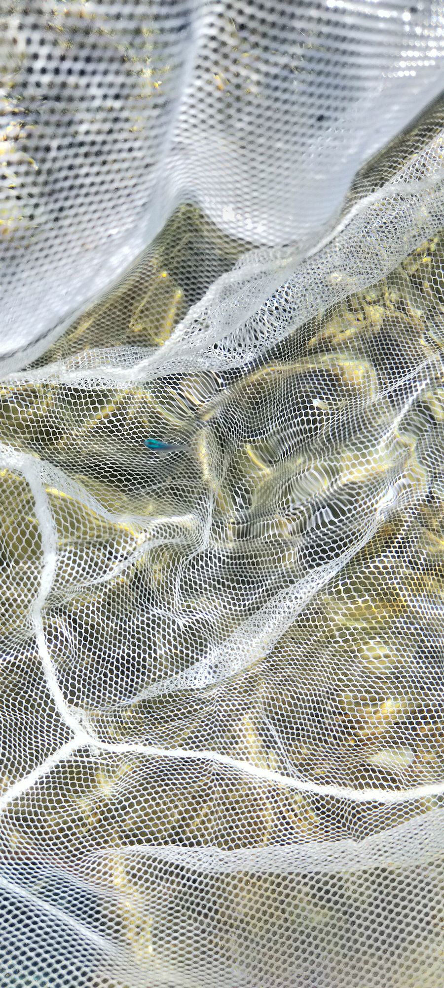 潮溜まりに小さな青色の小魚がたまに居ます。↓のようにメタリックブルーなので、ゆっくり海面を覗くとたまに見つけられます。
