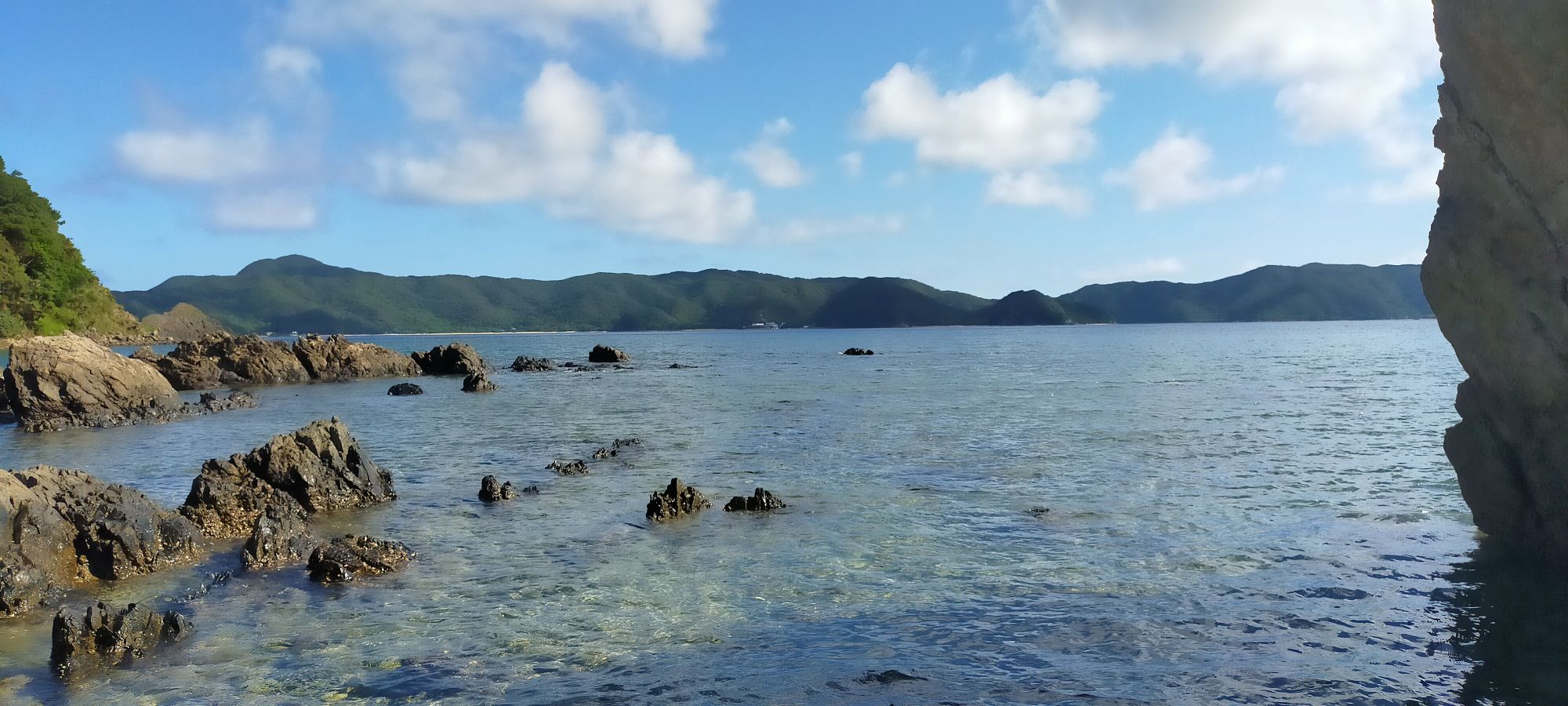 一方で、こちらは潮の引いた岩場です。水中には色々な生き物の観察が出来ます。