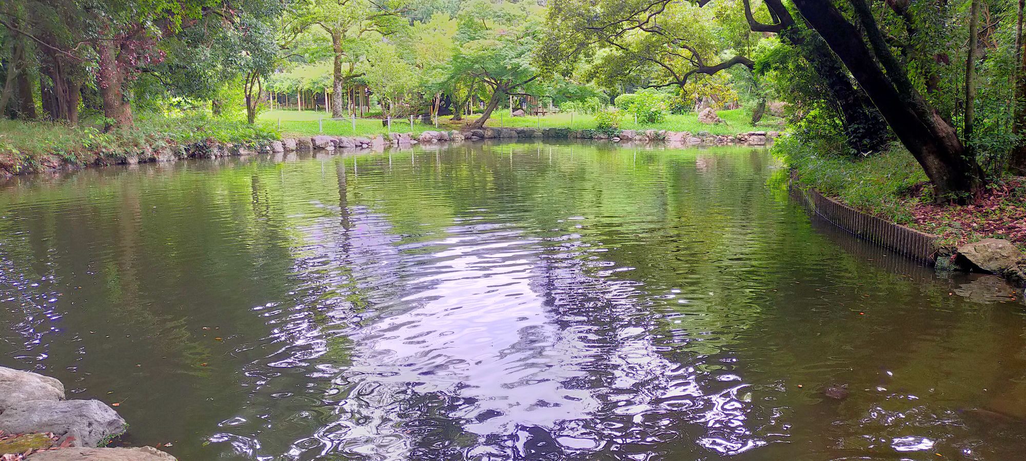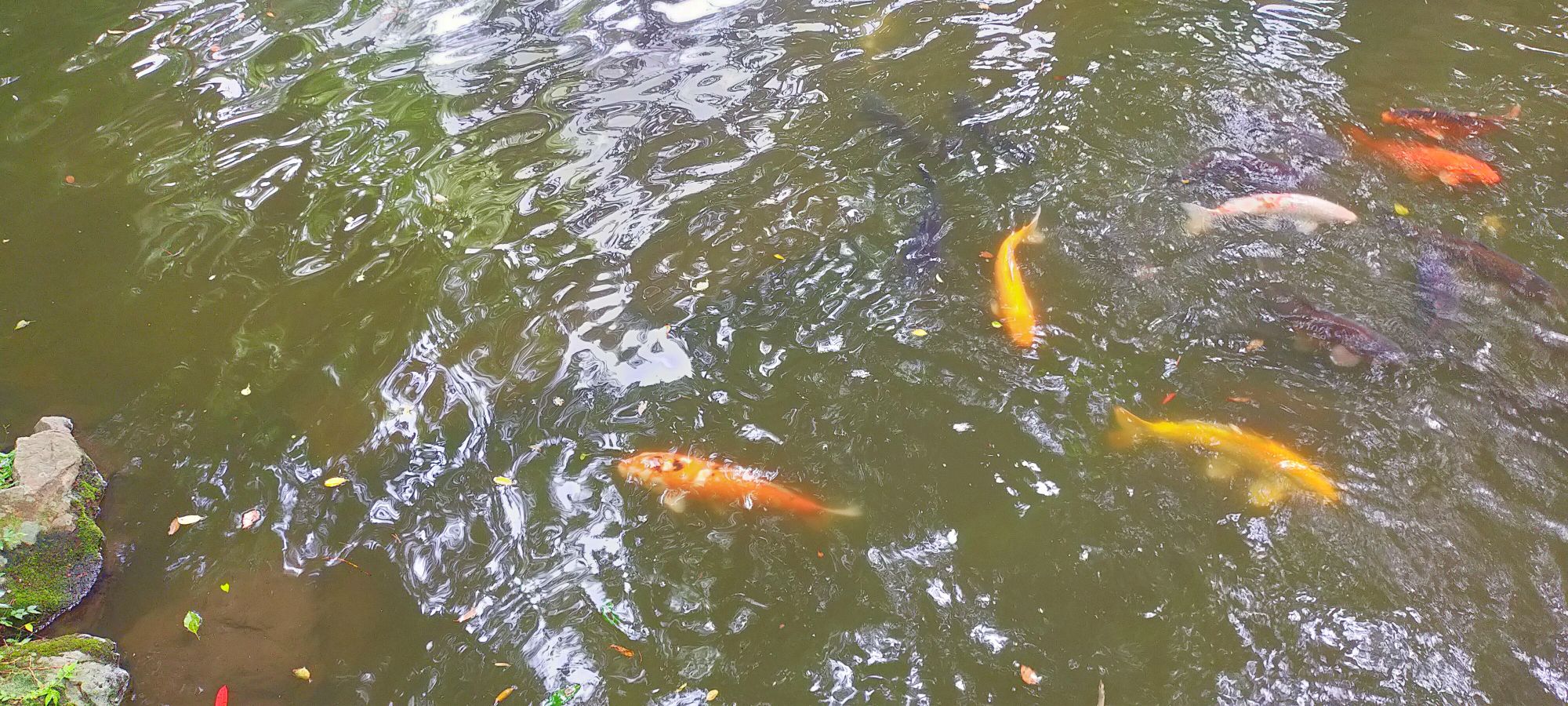 池の中には、鯉やスッポンやオタマジャクシなどが泳いでいました。
