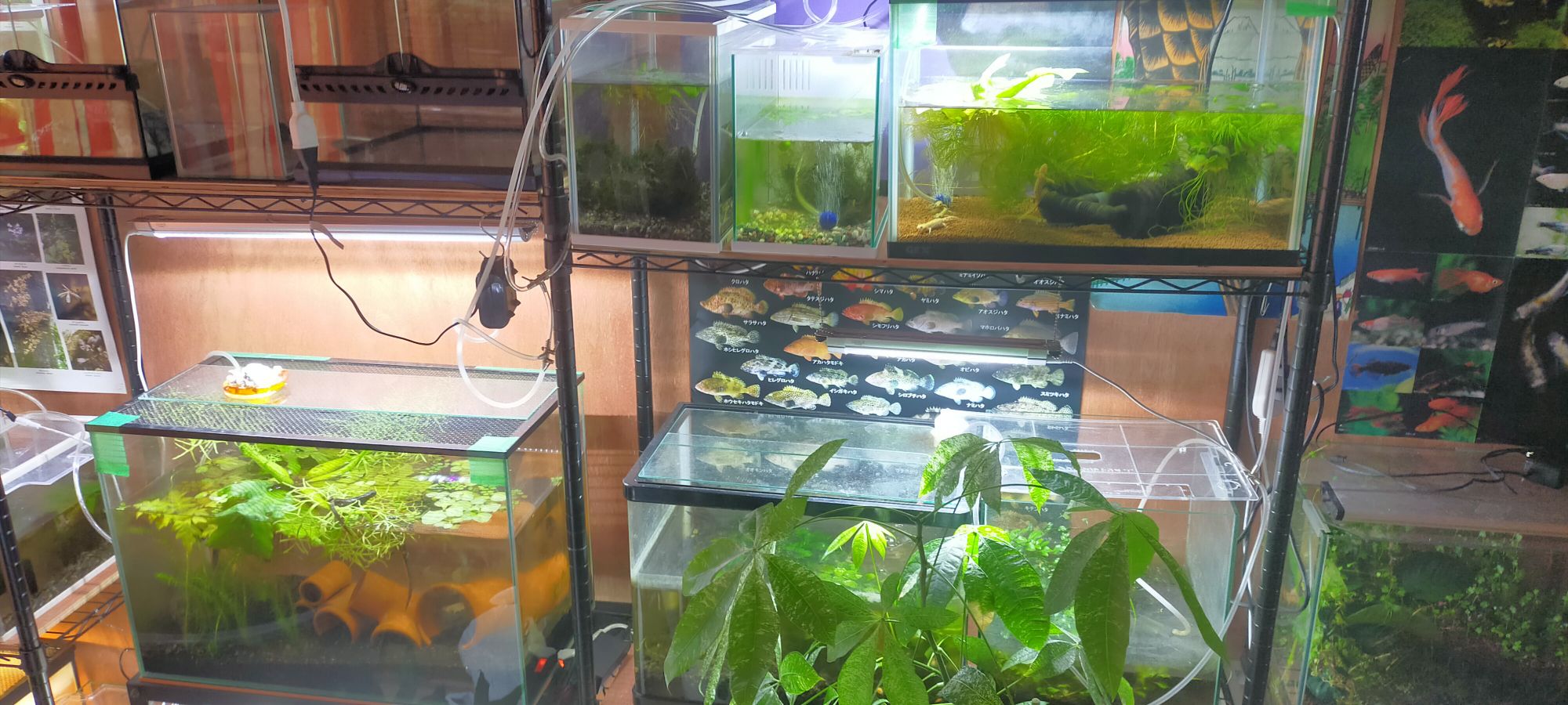 また、水槽が多いと「湿気と温度管理」も大変になります。