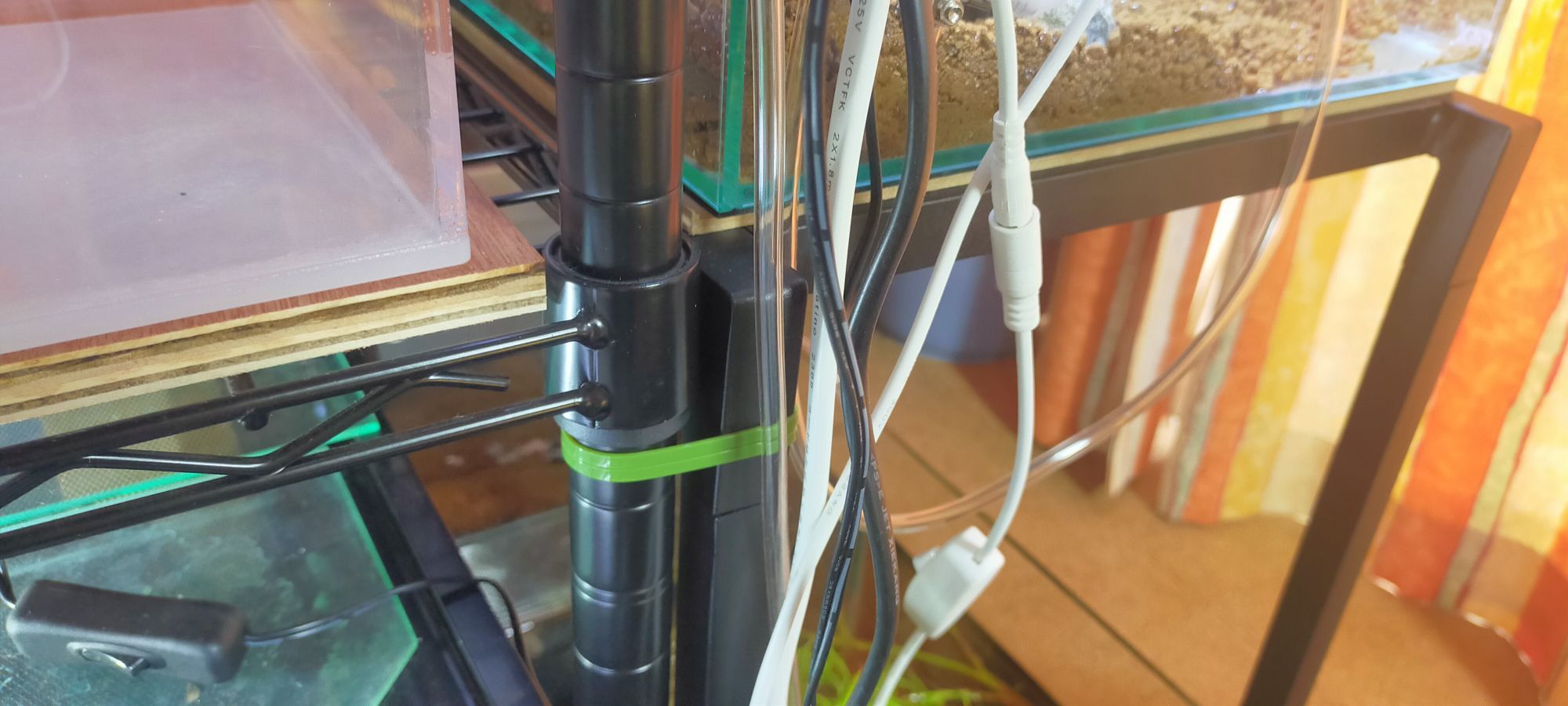 地震は本当に怖いのでーー結束バンドや針金、ボルトとネジと金具などで、部屋全体のメタルラックや水槽台を固定してーーさらに壁にも複数箇所、金具で固定しています。