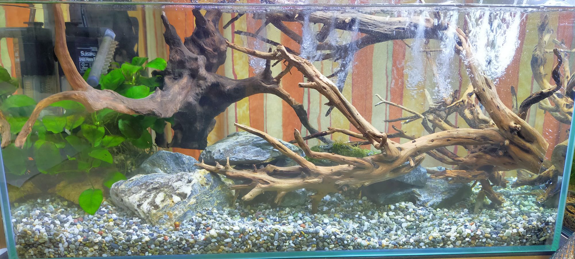 野生を忘れているのと、「ベアタンクで飼われている=粒状のものは餌と認識している」ような個体も居るのでーー下手に底砂やソイルをいれると、お腹がパンパンになるまで食ったりします。
