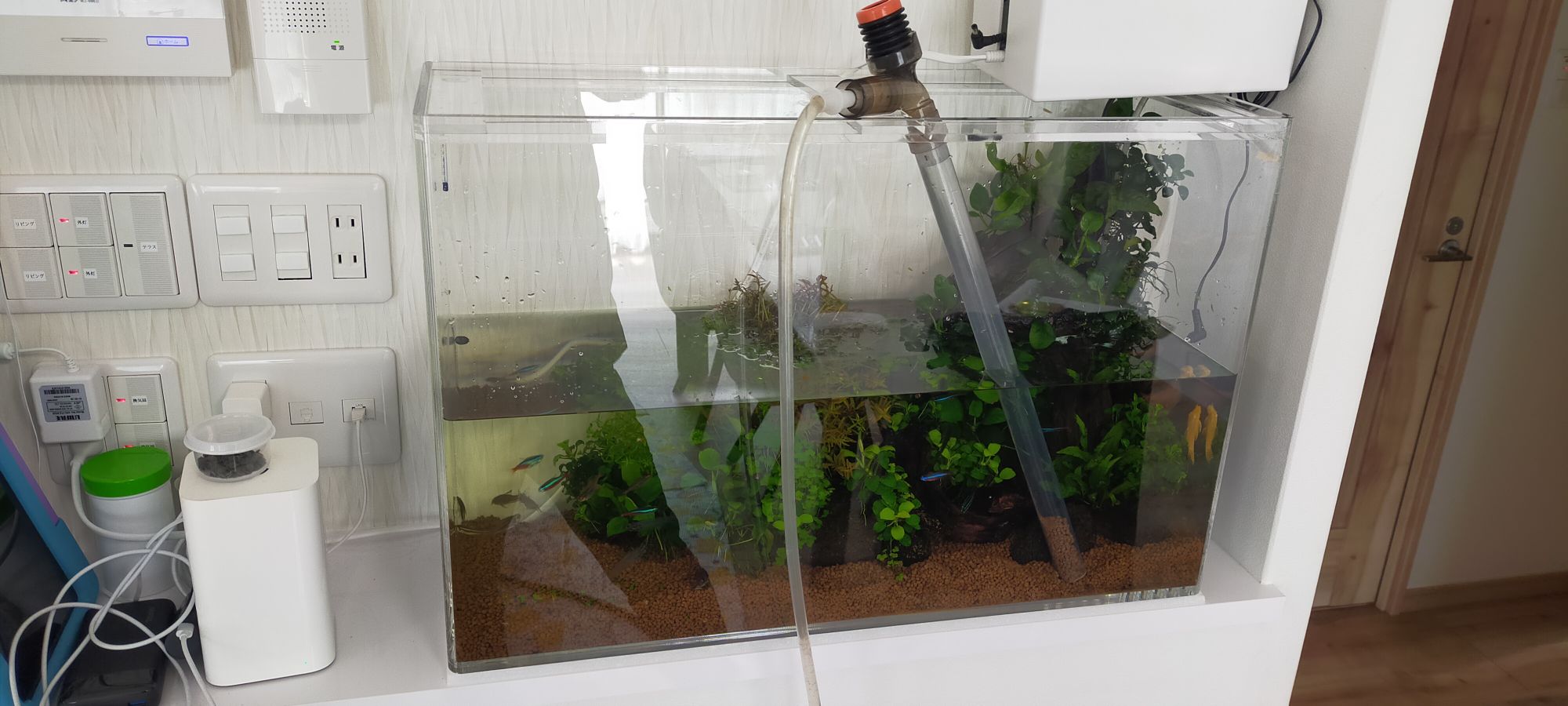 ・ろ過機を着けない水槽では、水が淀むとレジオネラ菌が増える危険性も有ります。加湿器の事故と一緒です。