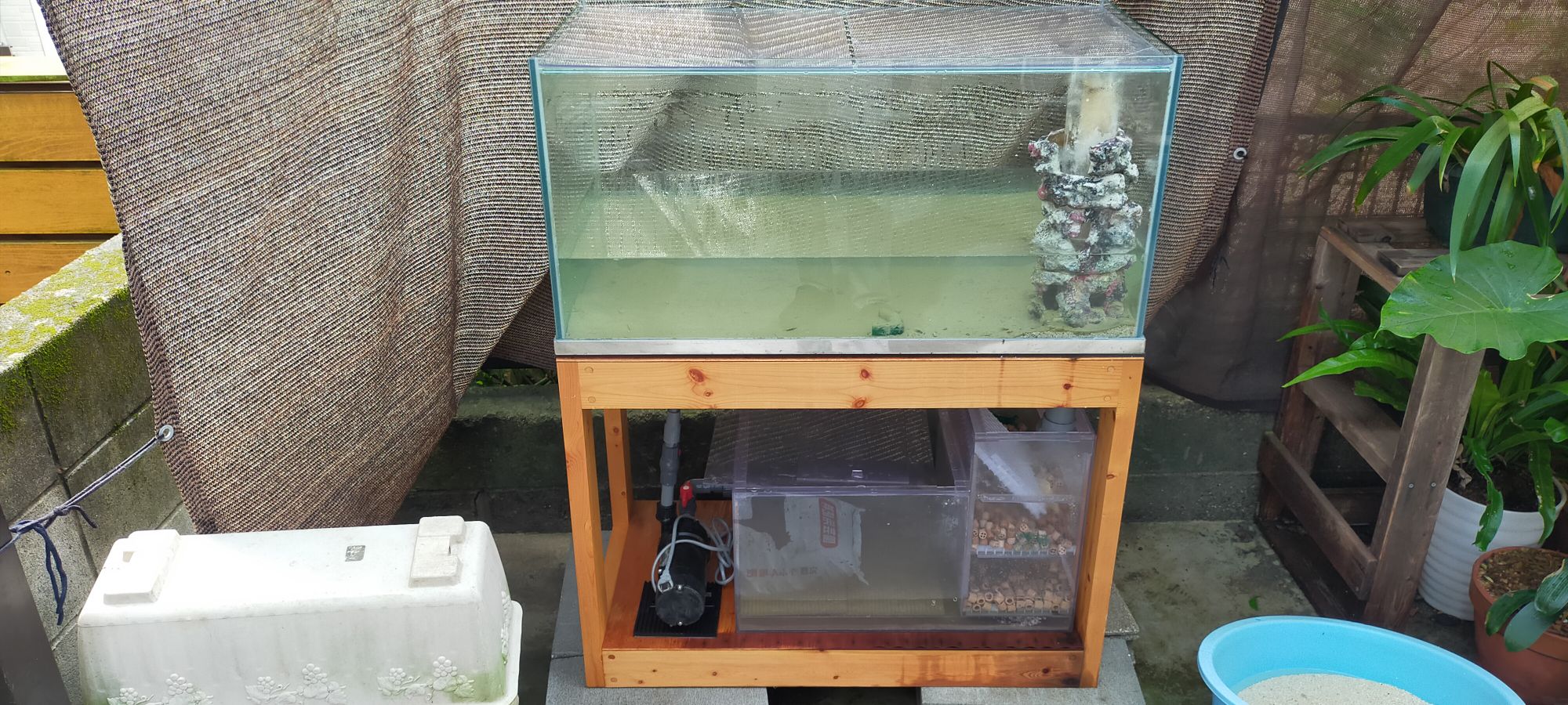 洗ってしまえば、水槽のガラスもとても綺麗ですし、濾過槽などからの水漏れ(移動する間に割れたり)が無い様子も確認出来ました。