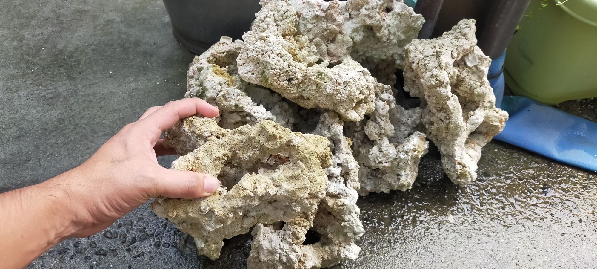 また、水槽内に入っていたサンゴの骨組みや底砂などの機材も取り出して洗浄。