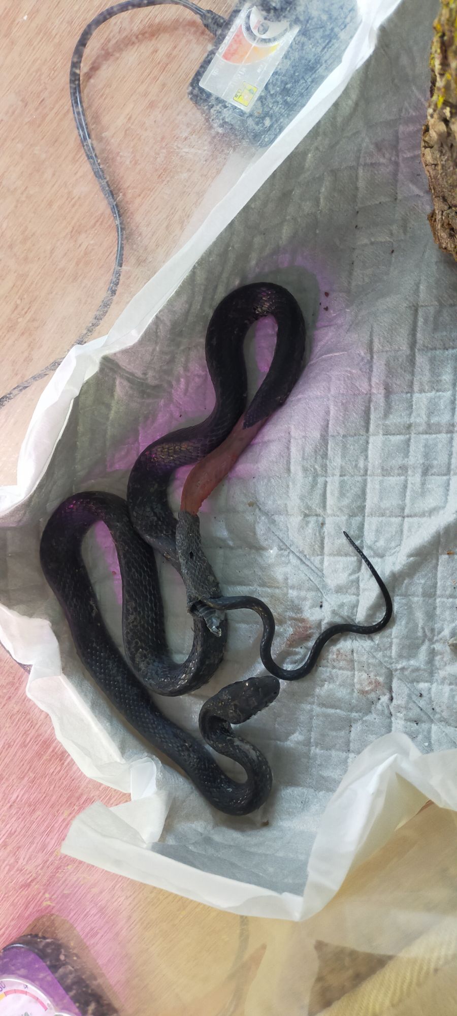 今後、回復状態や怪我の具合を見て、餌やりやお世話をしていきたいと思います。(餌の消化はヘビの体力を使うみたいなので、傷口がしっかりして大丈夫そうになるまでは、ヘビちゃんのご飯はお預けです)