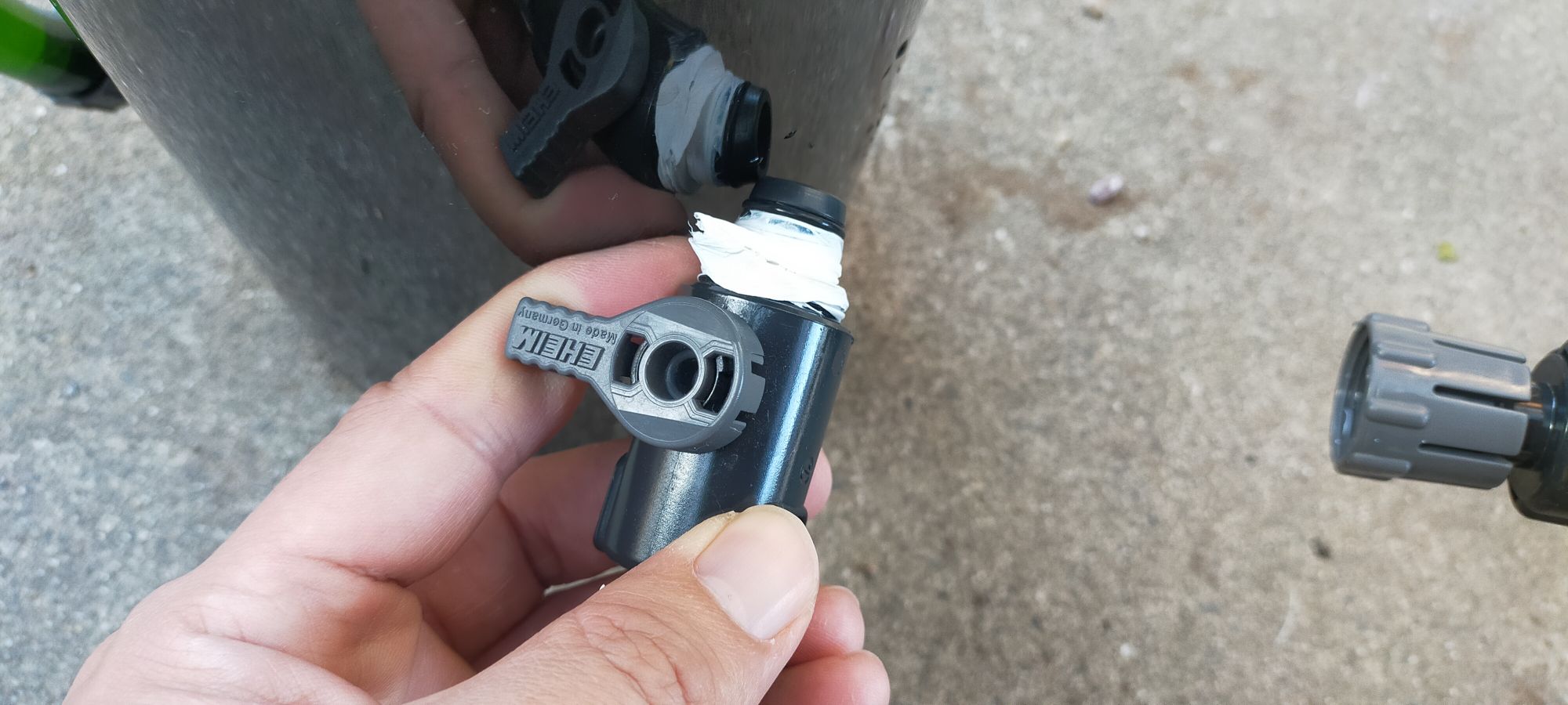 ↓のように、ネジ部分に水道テープを巻くことで「パッキンの代わり」になります。