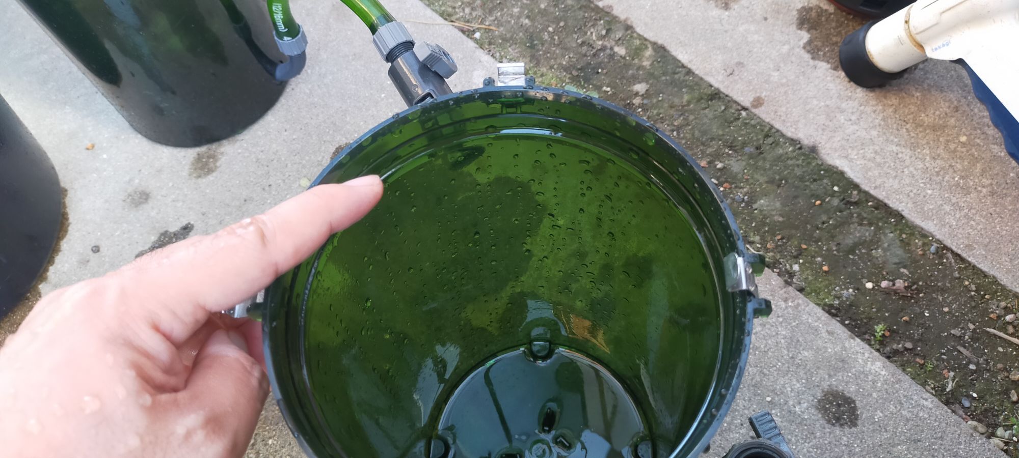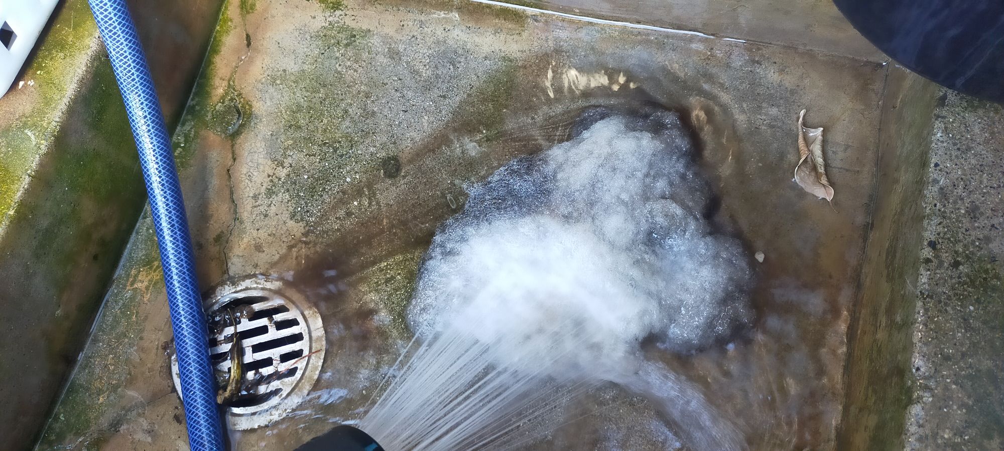 物理ろ過のスポンジとウールは、水道水でガシガシ洗って行きます。