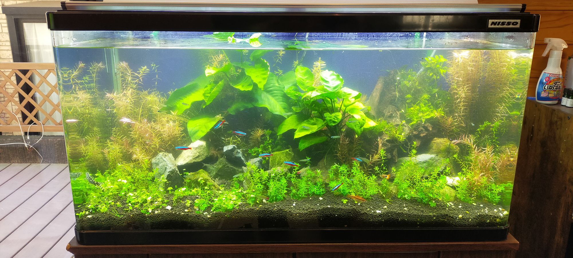 先日、定期メンテナンスをさせていただいているお客様宅にて、90センチ水草水槽の大掃除をして来ました。