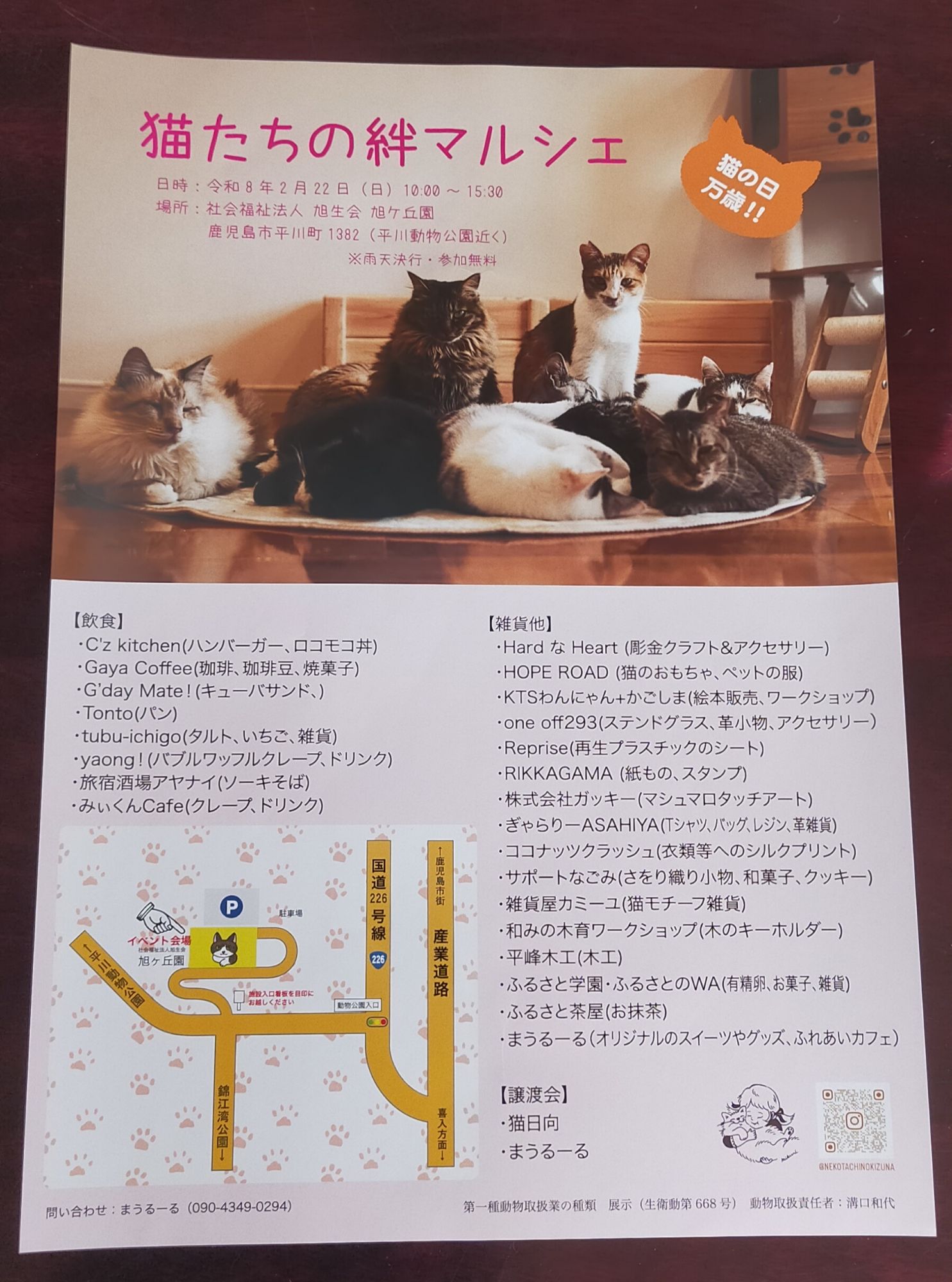 「猫たちの絆マルシェ」というフリーマケットのチラシを代表に貰ったので、こちらにも貼っておきます。
