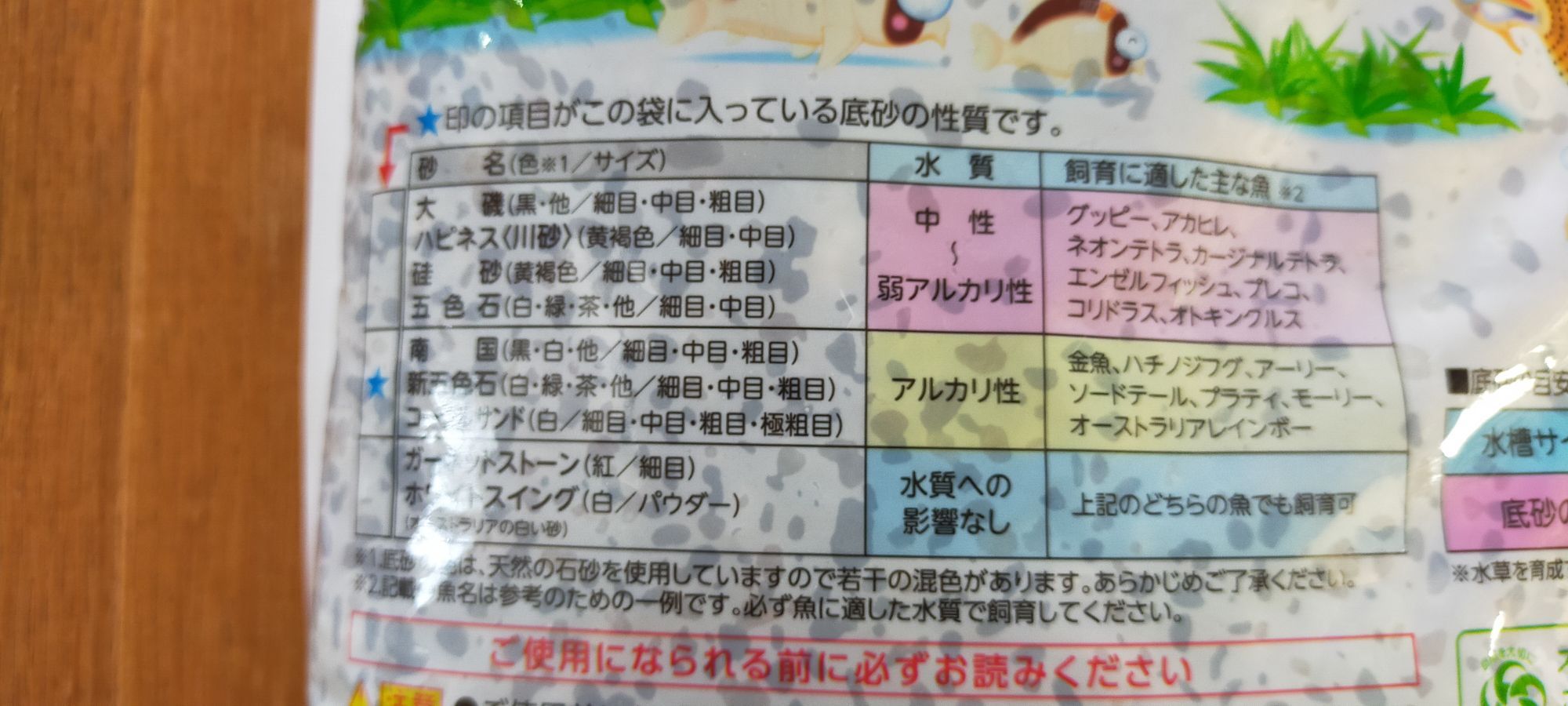 熱帯魚の底砂は色々な種類がありますが、「弱酸性が好き→ソイル」「中性〜弱アルカリ性が好き→南国砂や珪砂」を使う感じで選んでいただけたら間違いないかと思います。