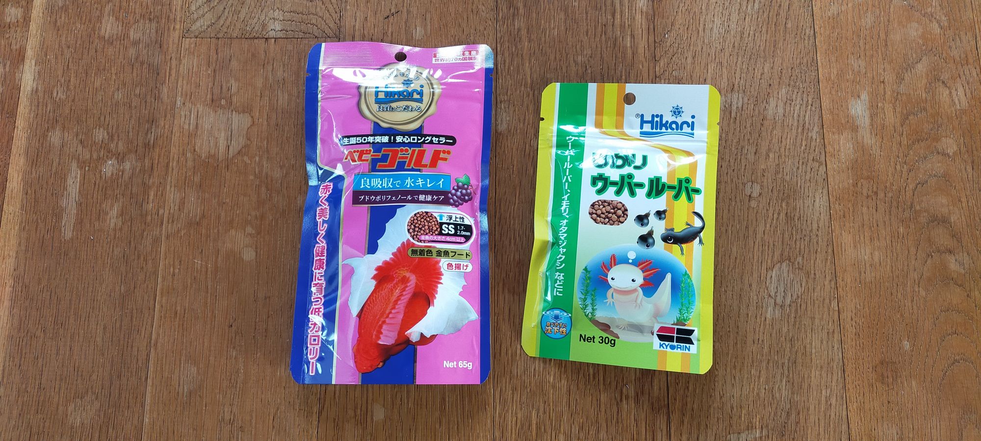 徳留アクア工房では、主にキョーリンさんの「ひかりウーパールーパーの餌」と、同じキョーリンさんの「ひかりイモリの餌」をメインで与えています。