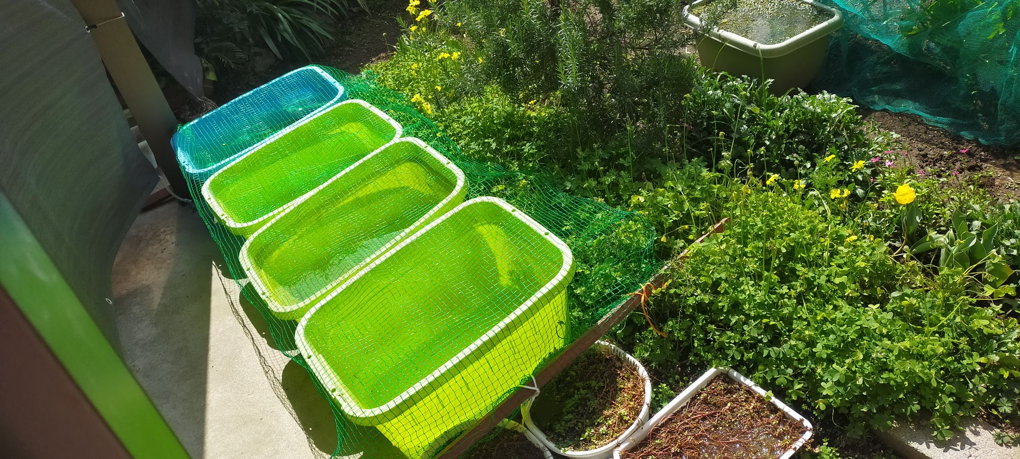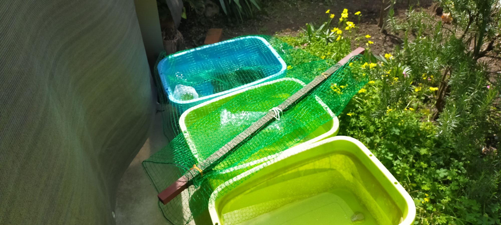 イタチとカラスとサギが出没するので、防獣ネットもかぶせておきます。