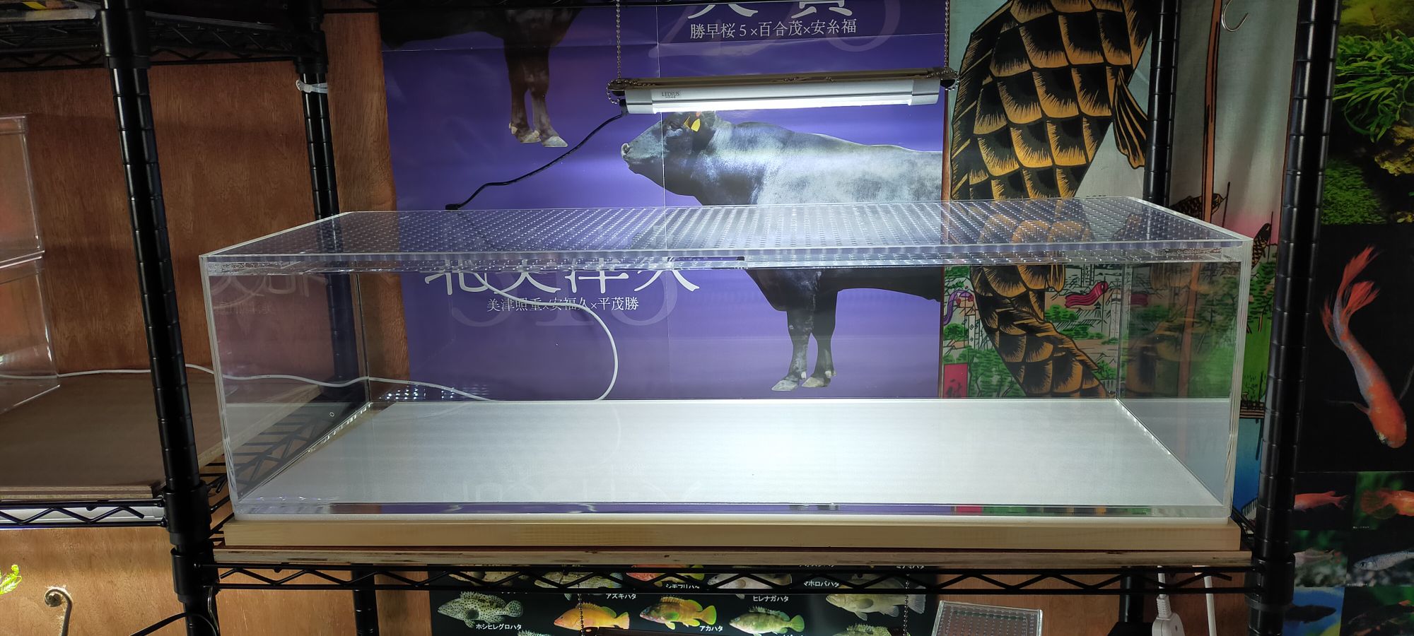 Amazonのメタルラックや棚板の補強など、「水槽を縦に3段置きするノウハウ」や「どの製品を選べば大丈夫か?」「壁に固定するorしない場合の地震対策」などの知識や経験も持っていますので、アクリル水槽ご購入のお客様のご質問の回答やサポートもお任せください。