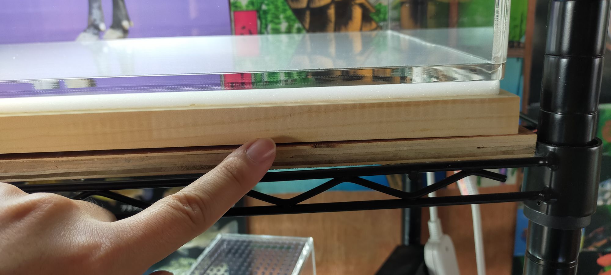 ↑や↓のように、今回のイモリ専用水槽も「板を二重にしてたわみがでないように調整」+「水槽の高さをあえて低くすることで、床面積を確保しつつたわみも防止」して使用しています。