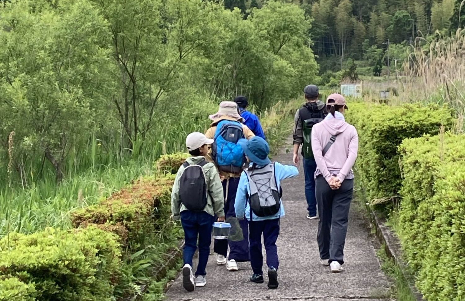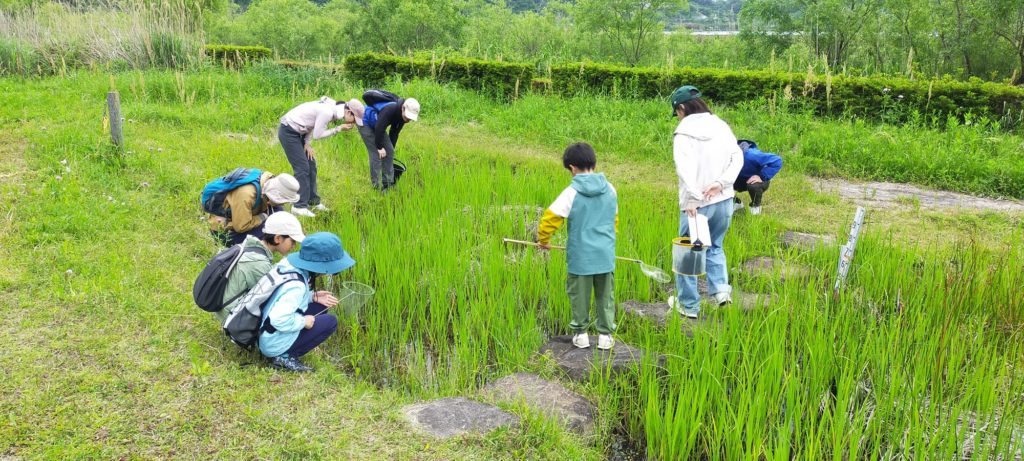 ①毎月1回、土曜日や日曜日の午前中に「生き物の観察会+ごみ拾い活動」などを行っています。