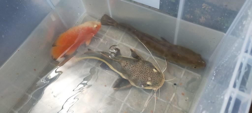 魚類、両生類、虫類、爬虫類などを徳留アクア工房が無償で引取り、かごしま水槽会の会員や賛助団体などの協力を得て、次の飼い主に繋げています。2023年1~9月末で約40件1000匹以上の引取り依頼があり――小さな生体は「メダカの若魚」、「金魚すくいで掬った金魚」、「エンゼルフィッシュ」、「小型の亀やイモリ」などが。大きな生体だと「40センチを超える熱帯魚(セルフィンプレコ)」や「甲羅が30㎝を超えるクサガメ」「成熟したニホンイシガメのペア」――なども新しい飼い主にお引渡しして、とても喜んで可愛がってもらえています。